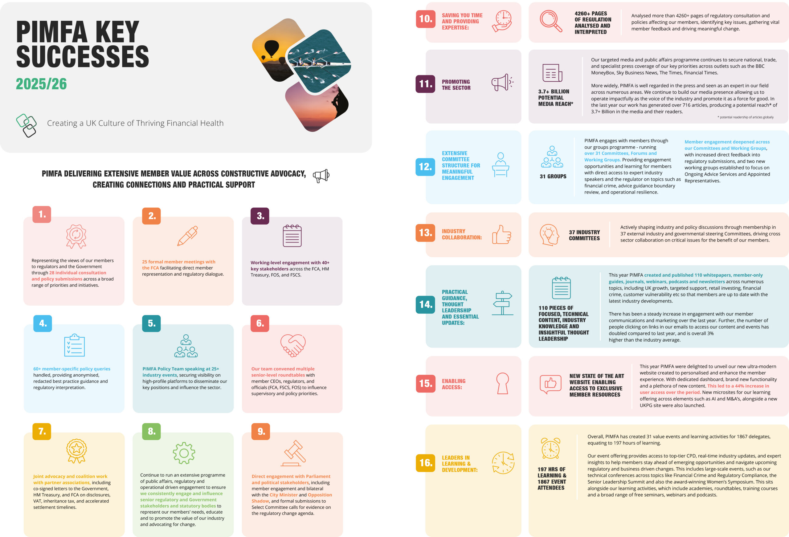 - PIMFA leads thinking and debate on key policy and regulatory recommendations, educating and helping to shift perception of our industry and positioning the UK as a global centre of excellence.